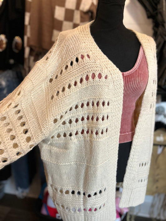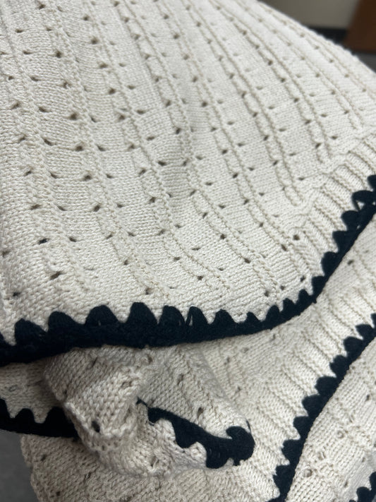 Stripe and Checkered Drop Shoulder Cardigan - Black