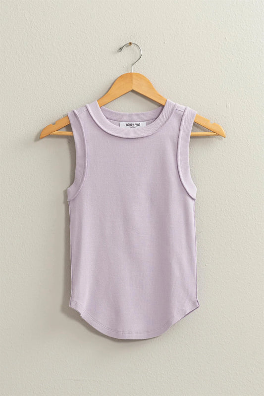 Ribbed Round Neck Tank - Lavender