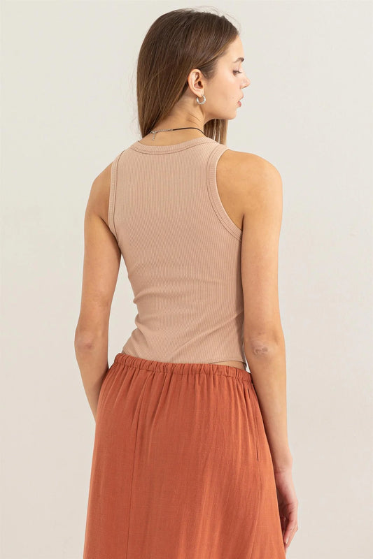 Sleeveless Round Neck Tank - Mocha