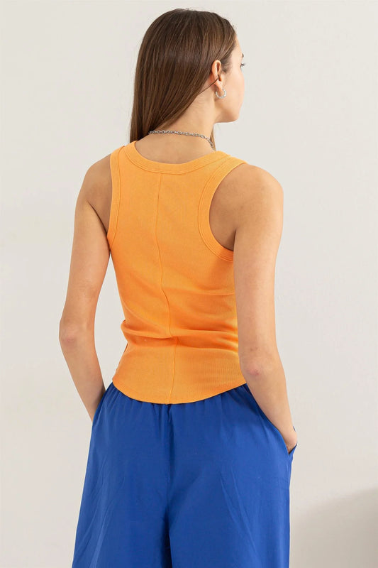 Ribbed Scoop Neck Tank - Orange